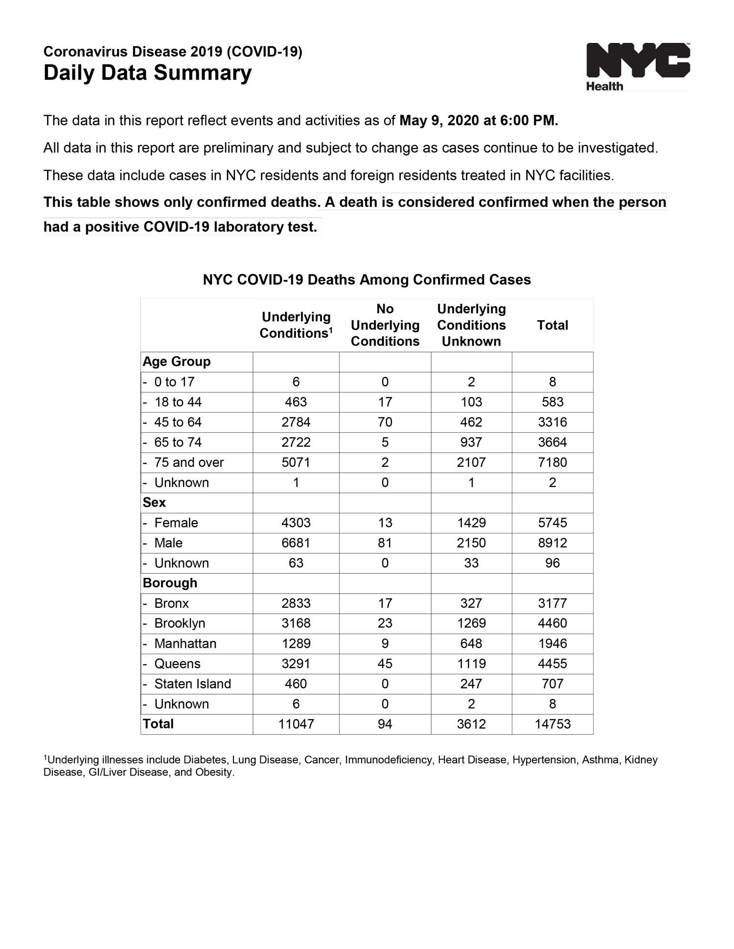 Now, take a look at the following page which was published by the New York City health department regarding death statistics for COVID-19 up to May 9th, 2020. Now remember, New York City is allegedly “ground zero” for the coronavirus crisis. They are supposed to have more cases than anywhere else in America.